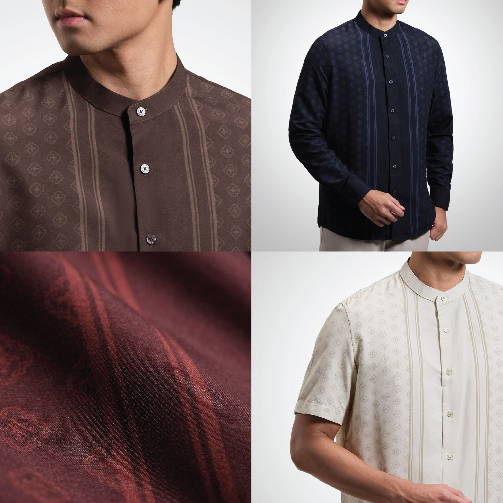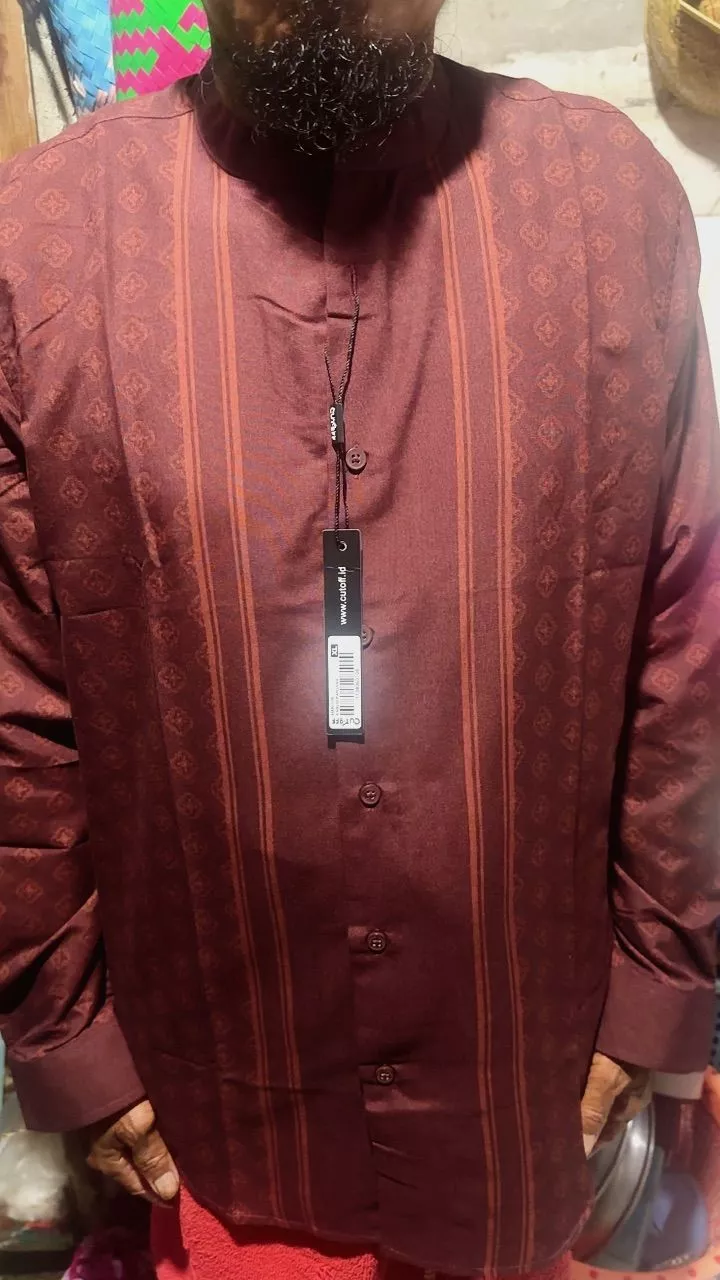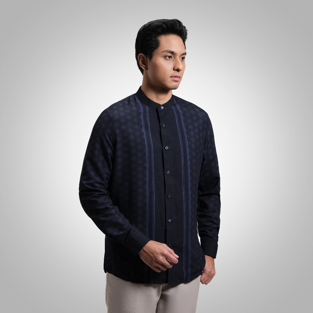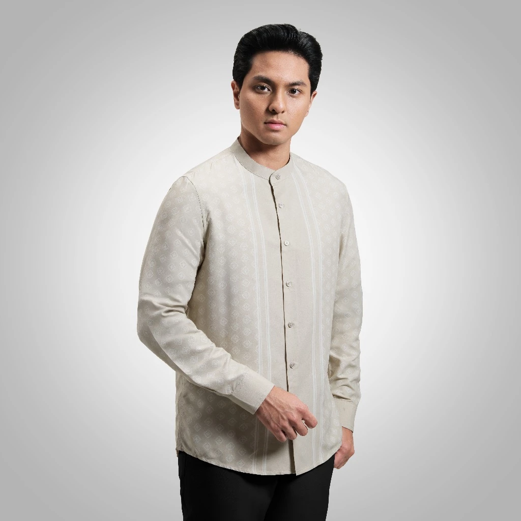Dengan Cutting Reguler Fit modern, kerah collarless, dan desain tanpa saku untuk kesan rapi dan minimalis. Dipadukan dengan motif printing islami eksklusif serta pilihan warna yang mewah, Khalid Printed Collarless Shirt menjadi pilihan tepat bagi pria yang ingin tampil berbeda, luxury, dan tetap elegan saat momen spesial hari raya.