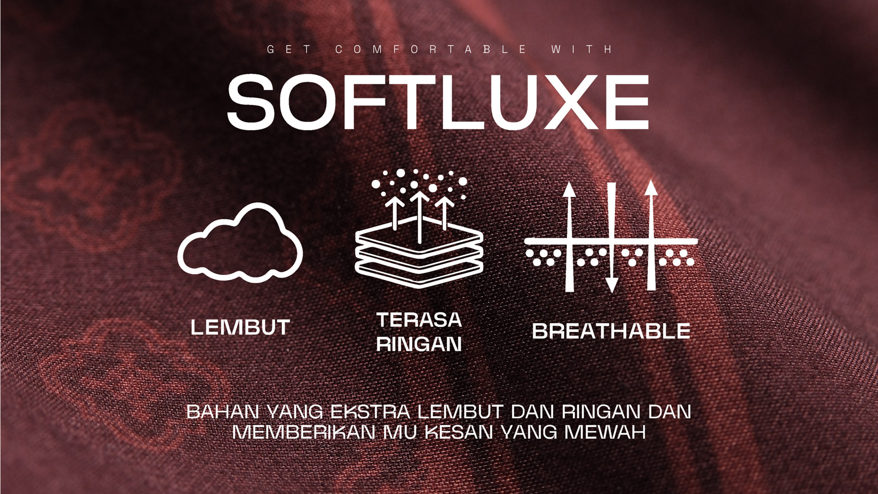 Bahan SoftLuxe dengan tekstur lembut, ringan, dan nyaman di kulit.